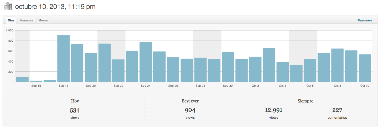Por otra parte y según el archivo de la web, he publicado 112 artículos repartidos en 75 publicaciones durante el mes de Septiembre y 35 en lo que va de mes!! A por más!!!