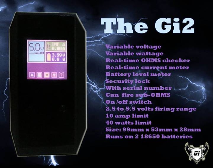 Se trata del Gi2 fabricado por Grand Innovations y más que un mod de voltaje y wataje variable al uso, incorpora mediciones en tiempo real, en una pantalla LCD a color, con toda la información relevante de lo que está ocurriendo electrónicamente en el MOD y en tiempo real. No me extrañaría nada que además tuviera una pantalla táctil para operar y navegar por sus menus de usuario.